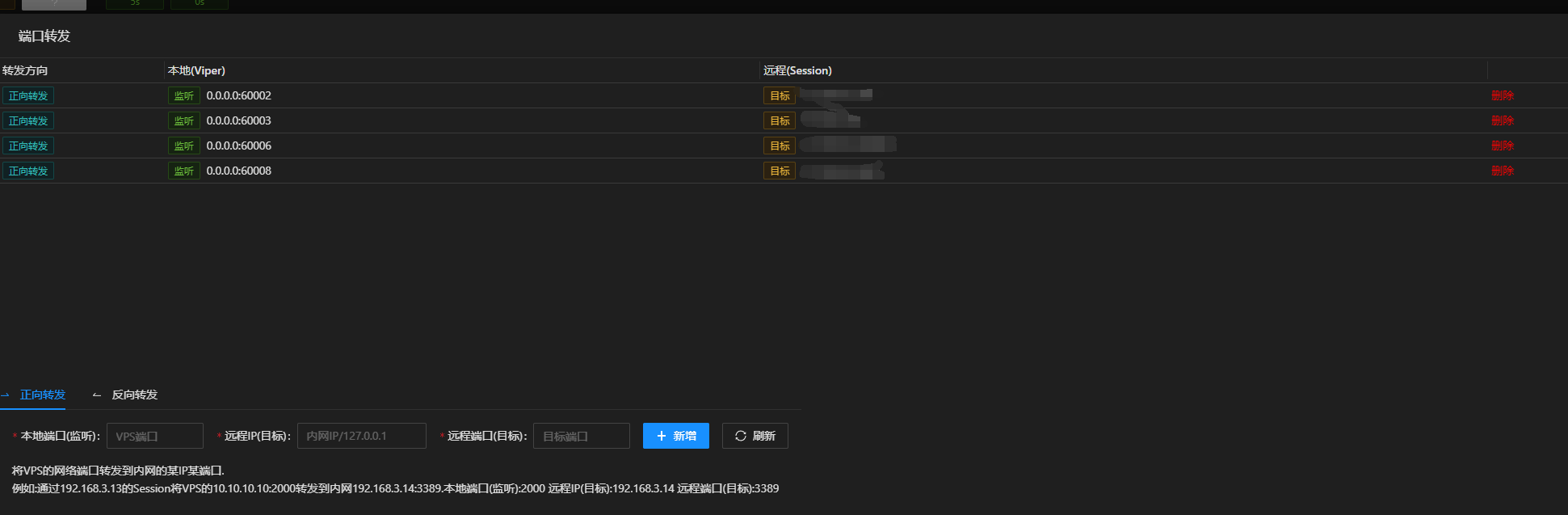 正向表示将目标端口映射至Viper,反向则是讲Vpier指定的端口映射至目标端口