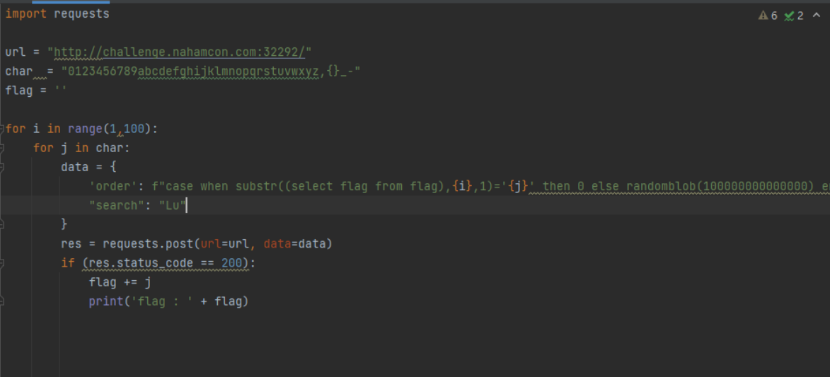 order = f" case when 1=1 then 0 else randomblob(100000000000000) end "