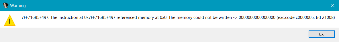 动调,输入,跑,会发现弹出了尝试往只读内存写入的警告窗口