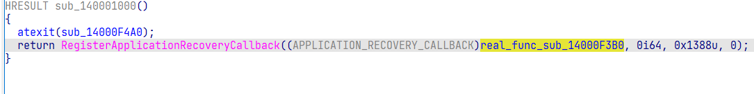 然后这实际上是利用了Windows Error Reporting (WER)的机制,设置恢复程序后调用的函数,把真正的check放在这里了